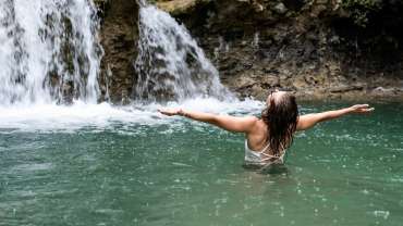 Con su imponente caída de agua, rodeada de vegetación…